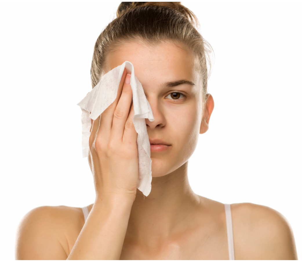 Face wipes can push the dirt and make-up on your skin further into your pores, leaving them clogged and causing breakouts.