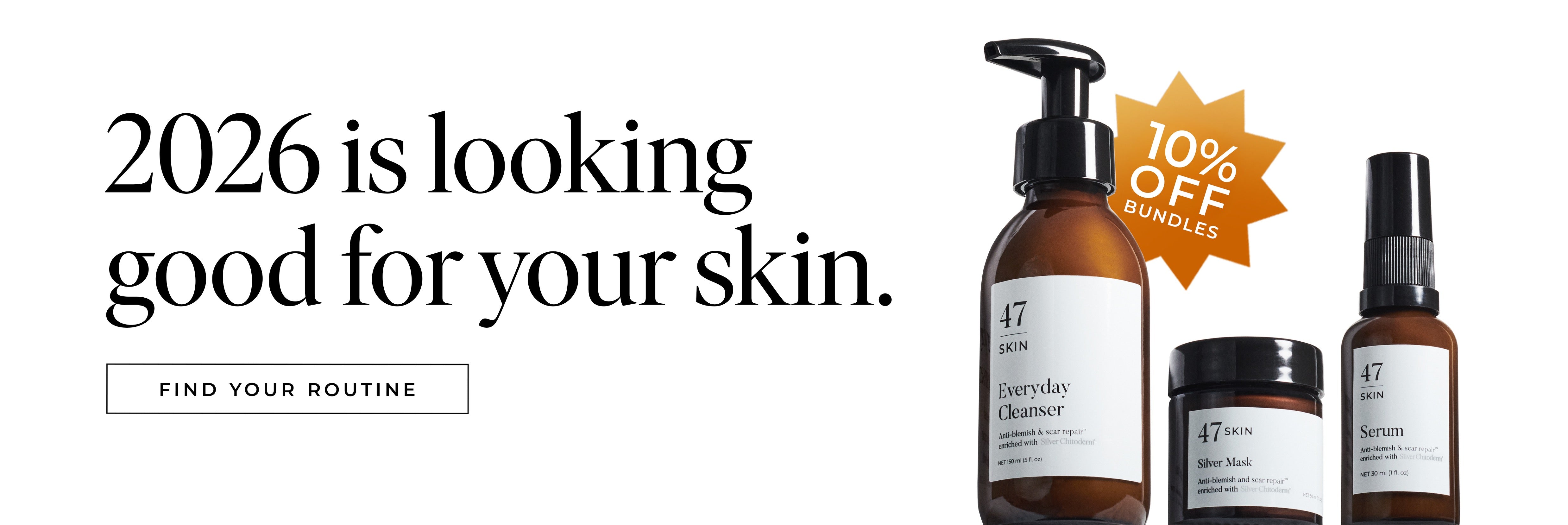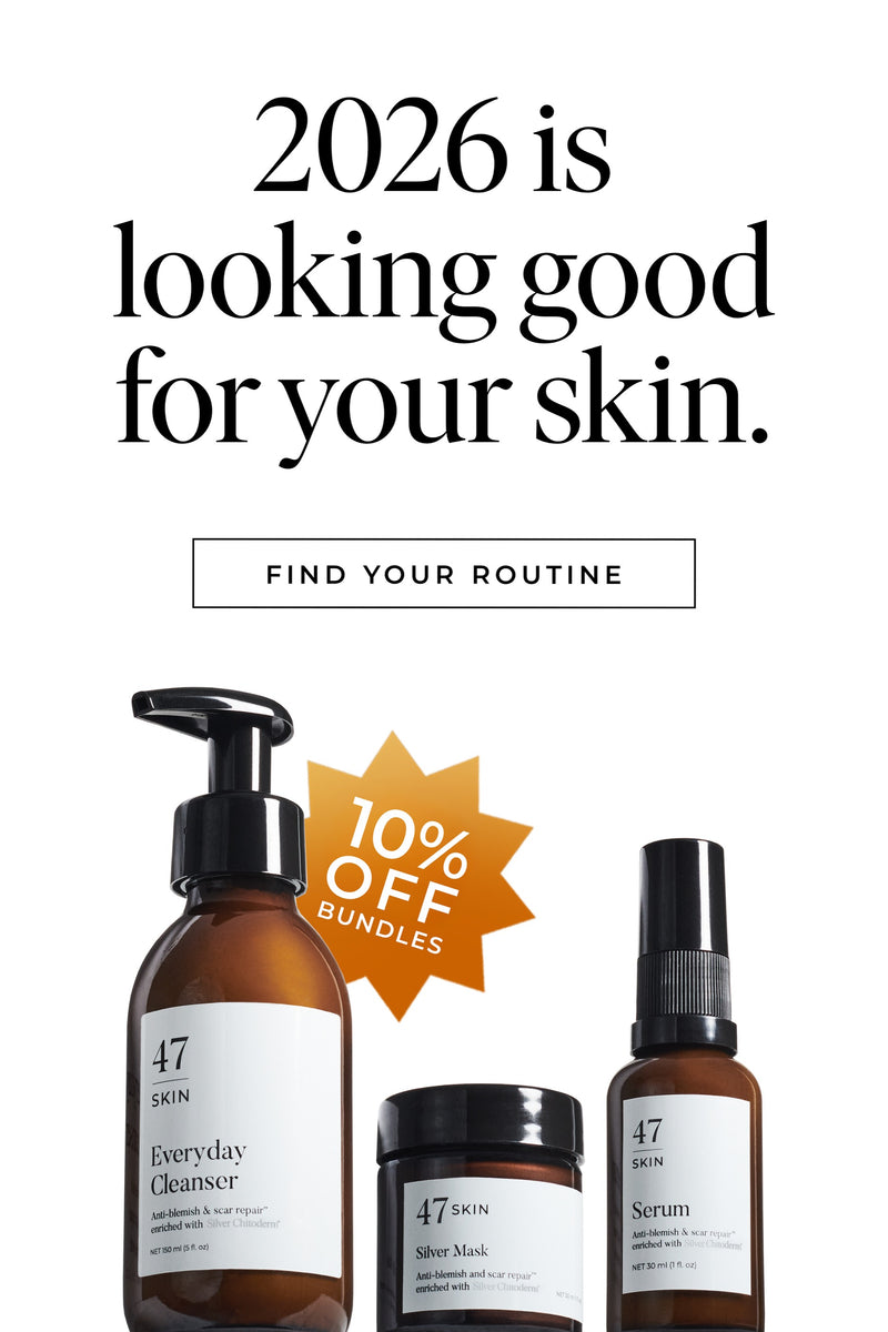 That’s where our bundles come in. Simple but effective routines, powered Silver Chitoderm® - our unique, dermatologist-approved and clinically tested ingredient. 47 Skin strengthens the skin barrier, soothes visible irritation and supports a clearer, calmer, more hydrated complexion.